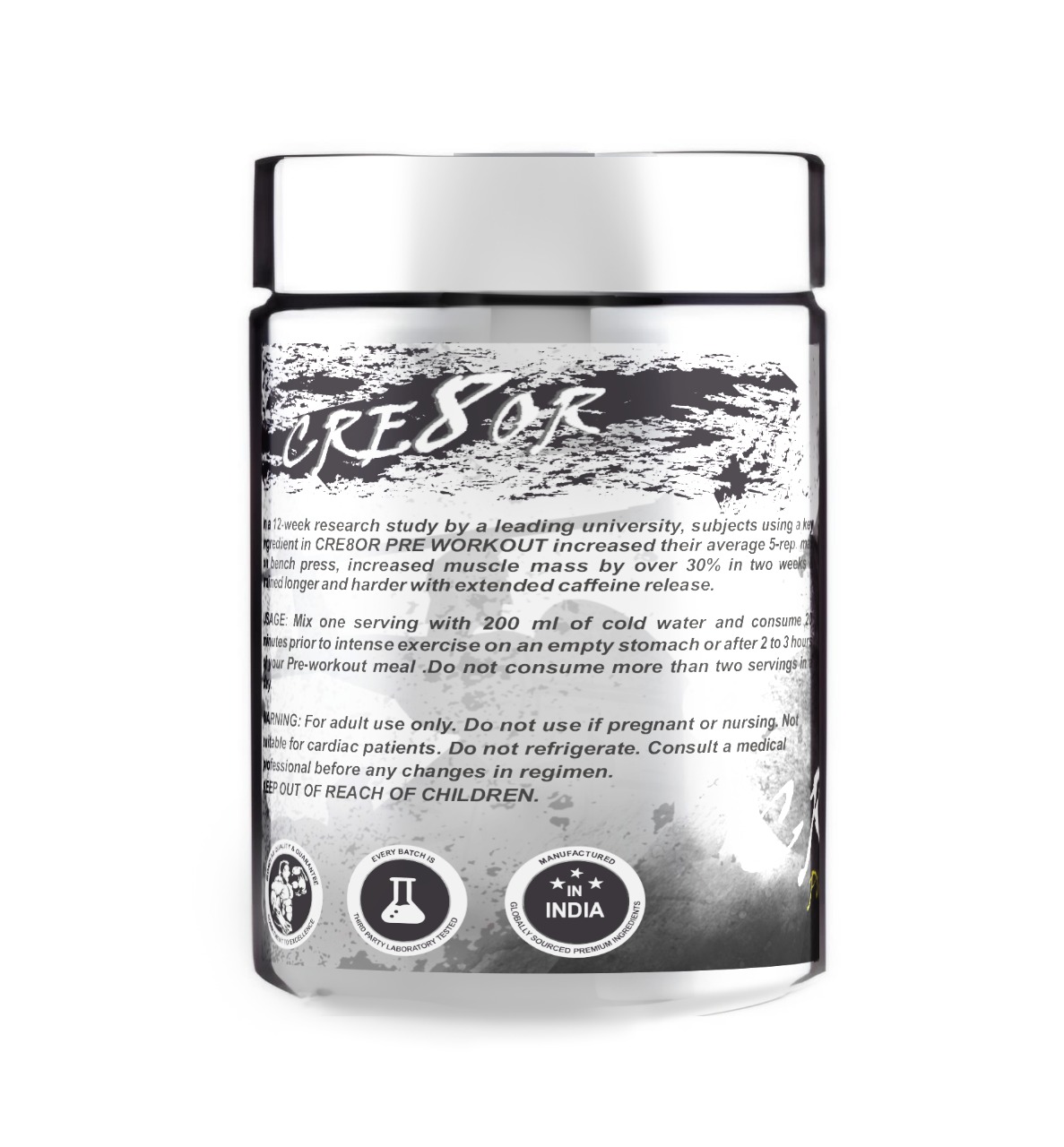 Unleash your inner warrior with CRE8OR, a high-intensity pre-workout formulated to deliver explosive pump, sharp mental focus, and unmatched muscle endurance. Designed for serious athletes and fitness enthusiasts, CRE8OR primes your body and mind for maximum performance.